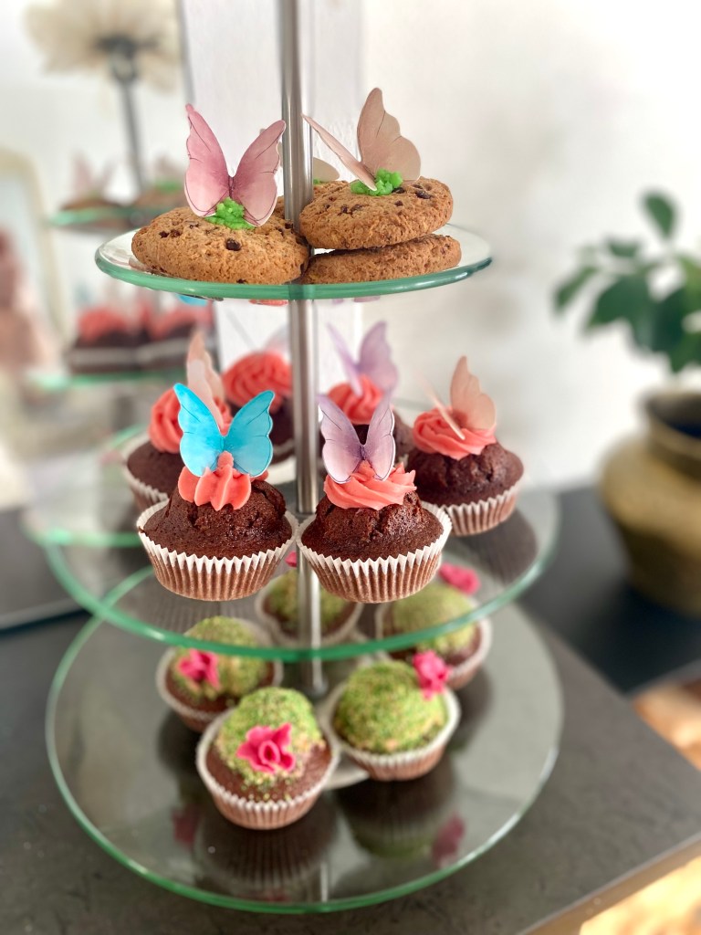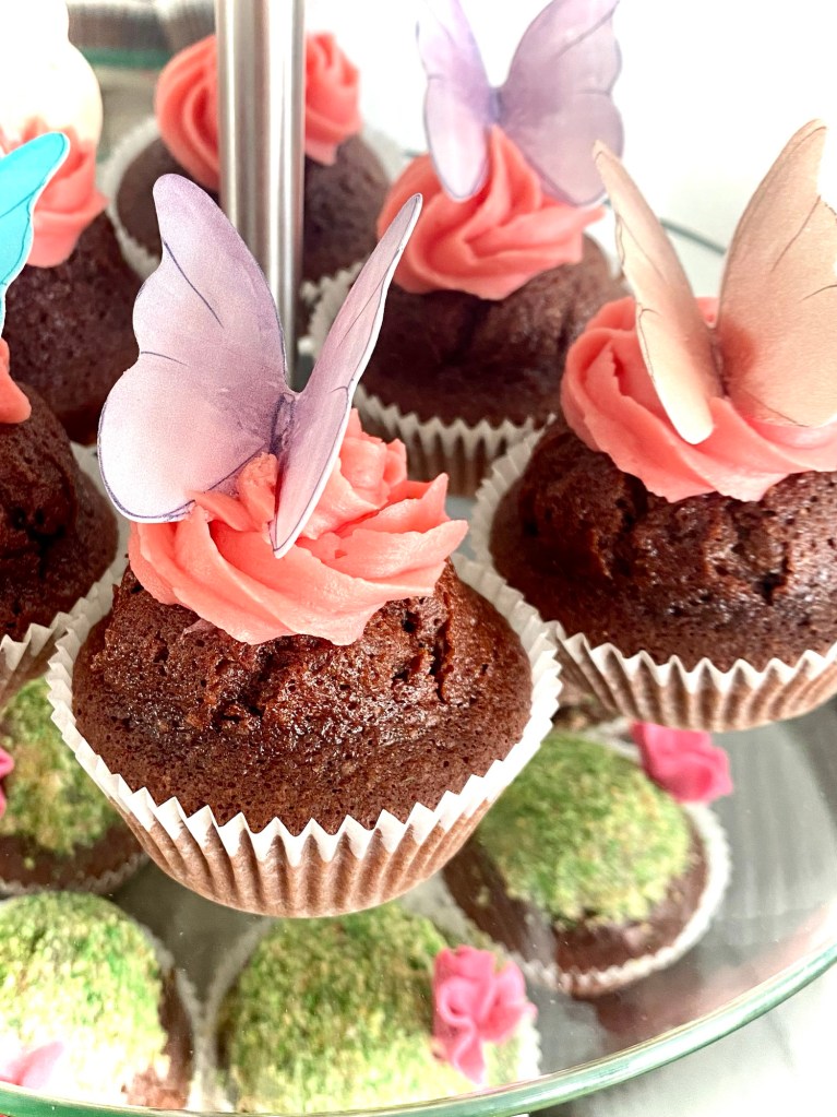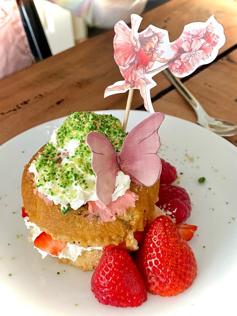 Finbesøk! Etter et par uker kom kusinen på besøk. Da måtte jo kakepynten frem igjen på hver sin muffin med krem og jordbær. Very Fairy! 🌸